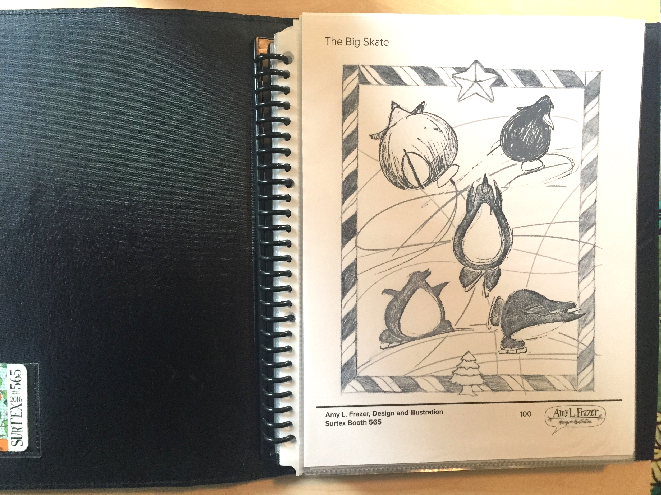 I also had press kits at my booth and gave out quite a few each day to people that seemed genuinely interested in working together. It had a Lookbook, mini notebook, 4 postcards, stickers and 2 business cards. People love free stuff and hopefully this will be a reminder of my work when they get back to their office. Or perhaps it will end up in the recycling bin.